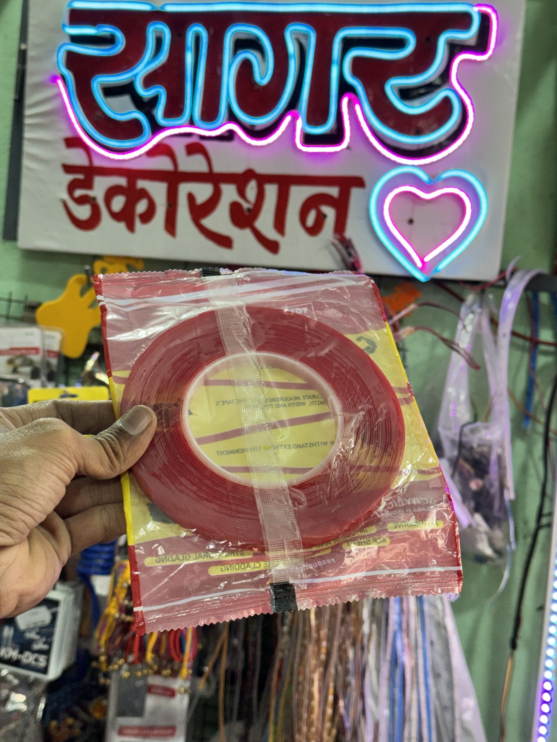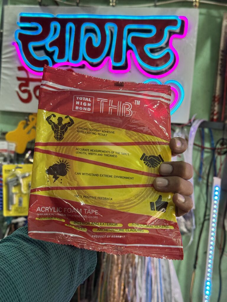 Experience ultra-strong bonding with 3M Heavy-Duty Double-Sided Gel Tape. This powerful tape can hold up to 6.7 kg per meter, works smoothly even on uneven surfaces, and is weather-resistant—perfect for indoor, outdoor, and automotive interiors. Ideal for home décor, DIY projects, and secure mounting. Available at Sagar Decorations.