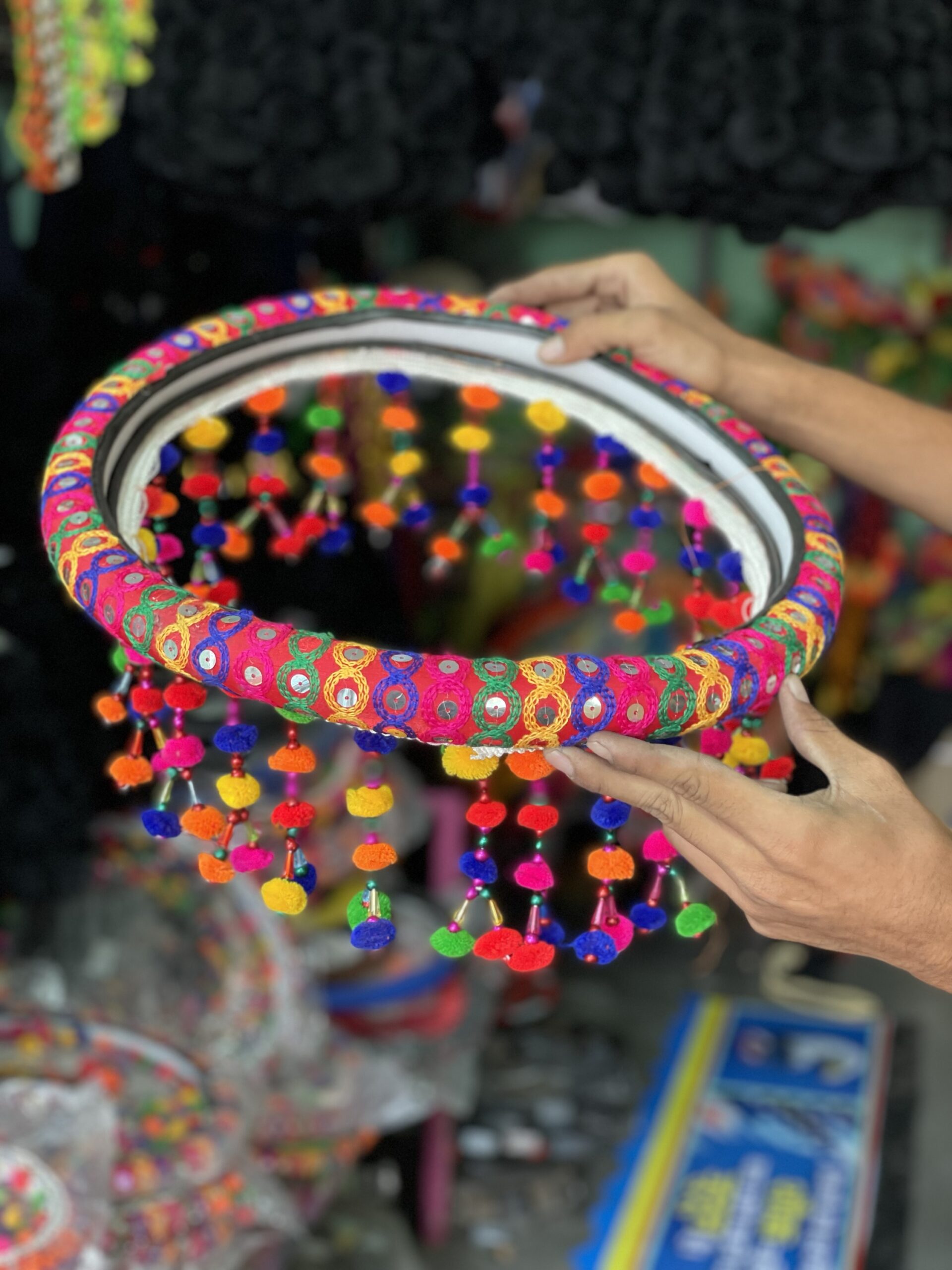 सागर डेकोरेशन्स की वेबसाइट पर प्रस्तुत हैजोधपुरी स्टाइल हैंडमेड स्टीयरिंग कवर (L साइज)जो आपके वाहन को दे पारंपरिक और शाही लुक।