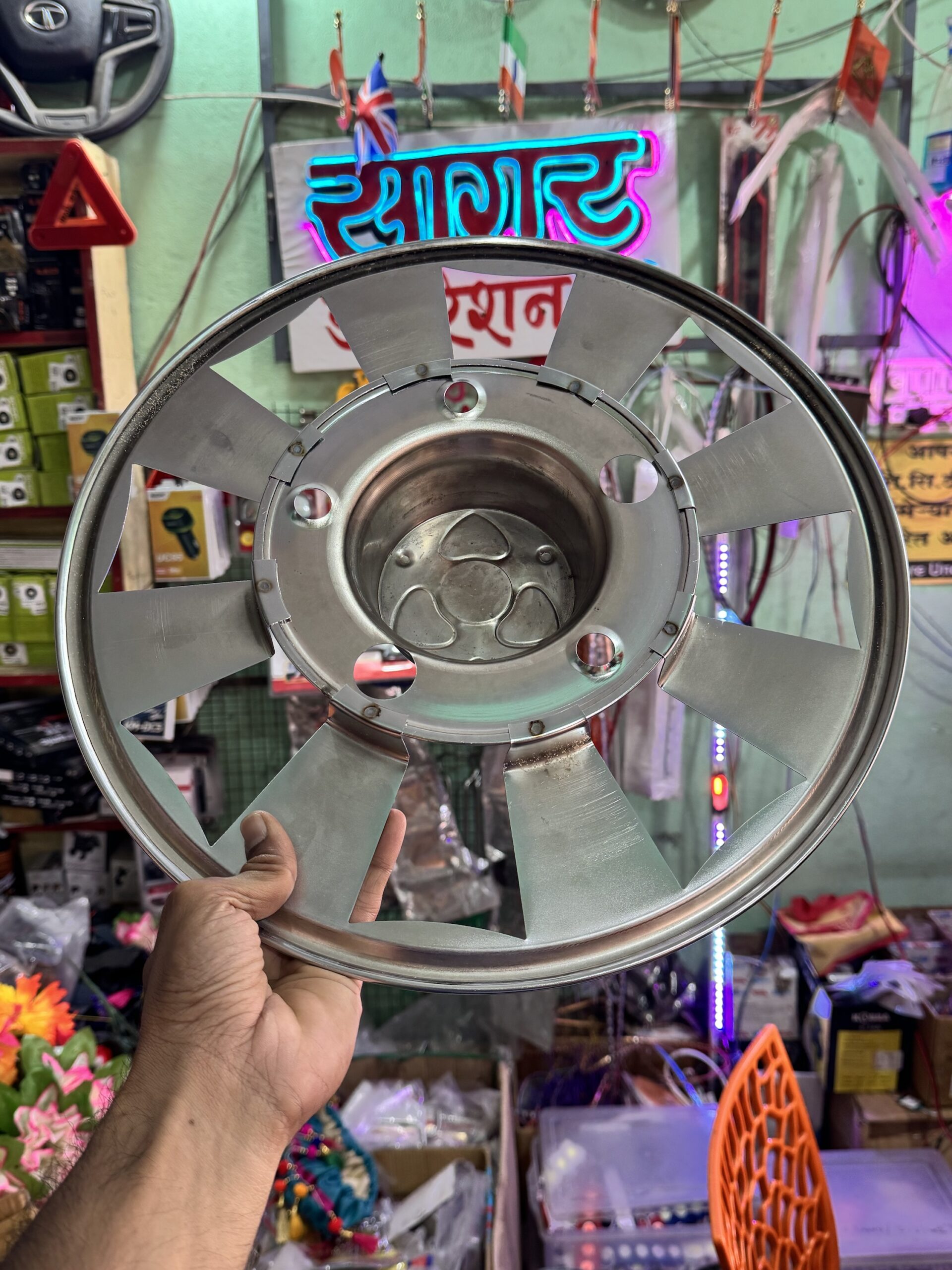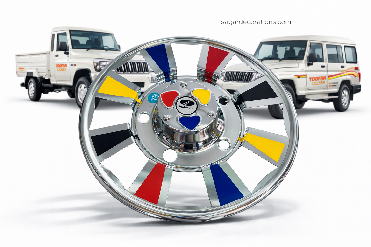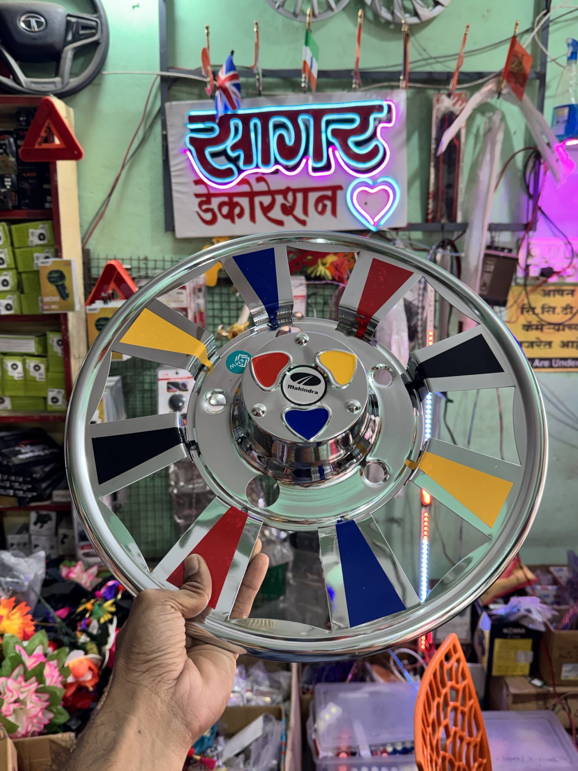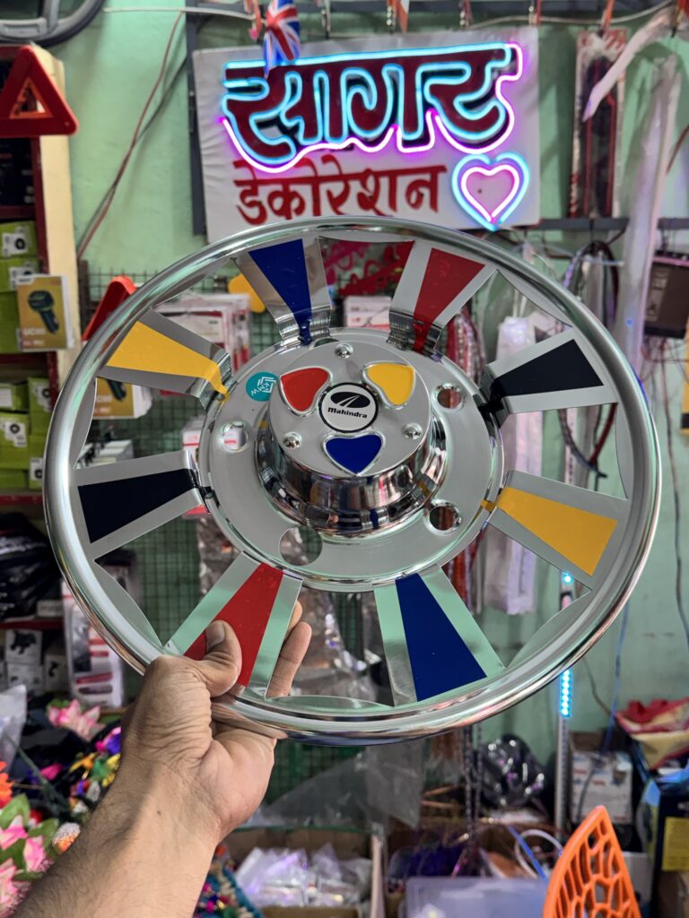 Multi Colour CP Steel Wheel cap For R-15 (5 bolts) tyre size Waterproof, durable and with proper welding material. [2 – Pis] || मल्टी कलर वाले CP स्टील व्हील कैप R-15 टायर साइज के लिए 5 बोल्ट वाले डिस्क में लग जायेगा. {2 पीस}