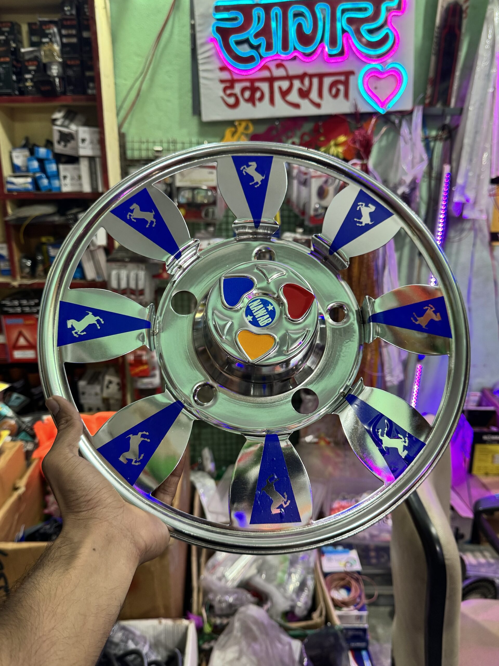 Steel wheel cap cp (15”inch) for bolero, cruiser and R-15 tyre size (set of 2-pis) [*Blue Colour] स्टील व्हील कैप cp (15” इंच) R-15 टायर साइज के लिये (2 – पीस) [*नीला कलर]